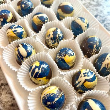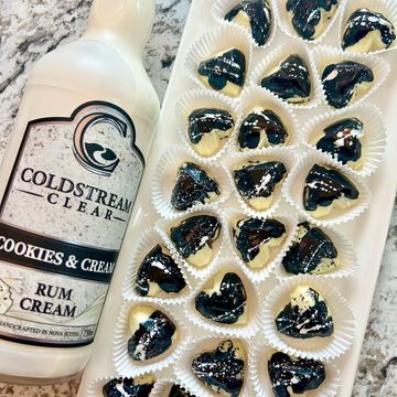 White Chocolate Ganache made with Coldstream Cookies n Creme Rum, cookie crumble wrapped in a White Chocolate Shell